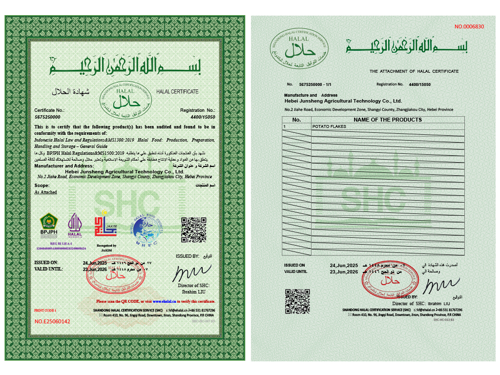 We specialize in the production of potato flakes and granules-Hebei Junsheng Agricultural Technology Co., Ltd., with a history rooted in our predecessor company, Junjie Agriculture Co., Ltd., and over eleven years of experience in the industry. Currently, we have an annual processing capacity of 7W tons of potatoes and produce 1.5W tons of potato flakes annually.