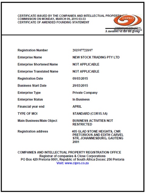 NEW STOCK TRADING CO SA (PTY) LTD occupies a special place in the
