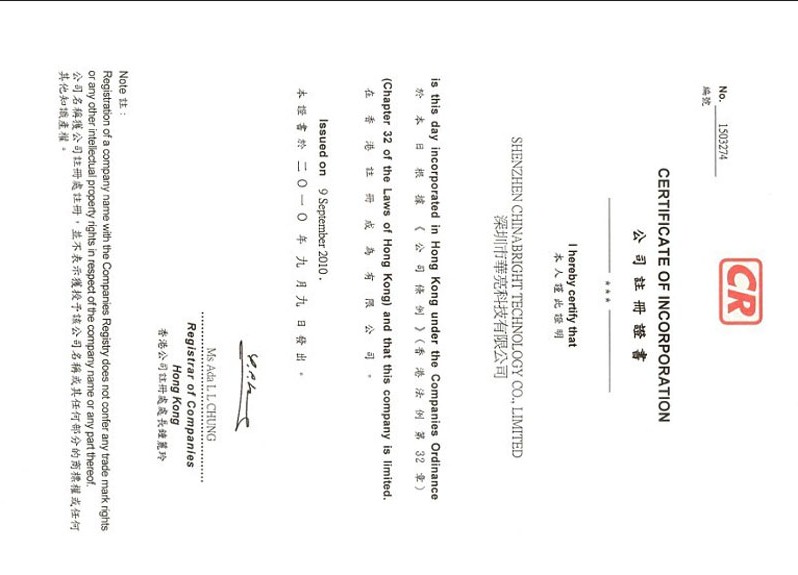 | 公司名称 | Shenzhen Chinabright Technology Co., Ltd |