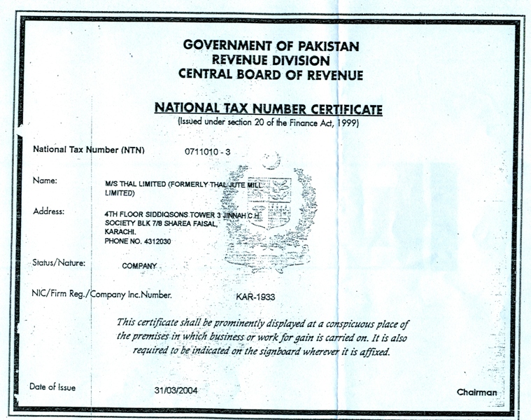 Thal Limited is a diversified national conglomerate engaged in the manufacture of Engineering products (Karachi), Jute products (Muzaffargarh), Laminate sheets (Hub) and Paper sacks (Hub & Gadoon).